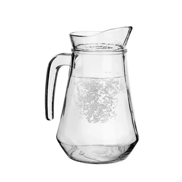 Üveg vizes kancsó.Űrtartalom: 1 liter.Alkalmas víz, gyümölcsé, tea tárolására.Mosogatógépbe tehető.