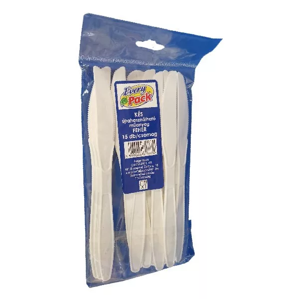 - Kés újrahasználható PS műanyag fehér 15 darabos