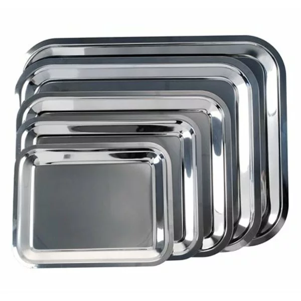 Szögletes tálca.Anyaga: rozsdamentes acél, 18/10 INOX termék.Szögletes forma, lekerekített sarkokkal.Magas minőség.Mosogatógépbe tehető.Méret: 45x35,5 cm. Perem magasság: 1,2 cm.