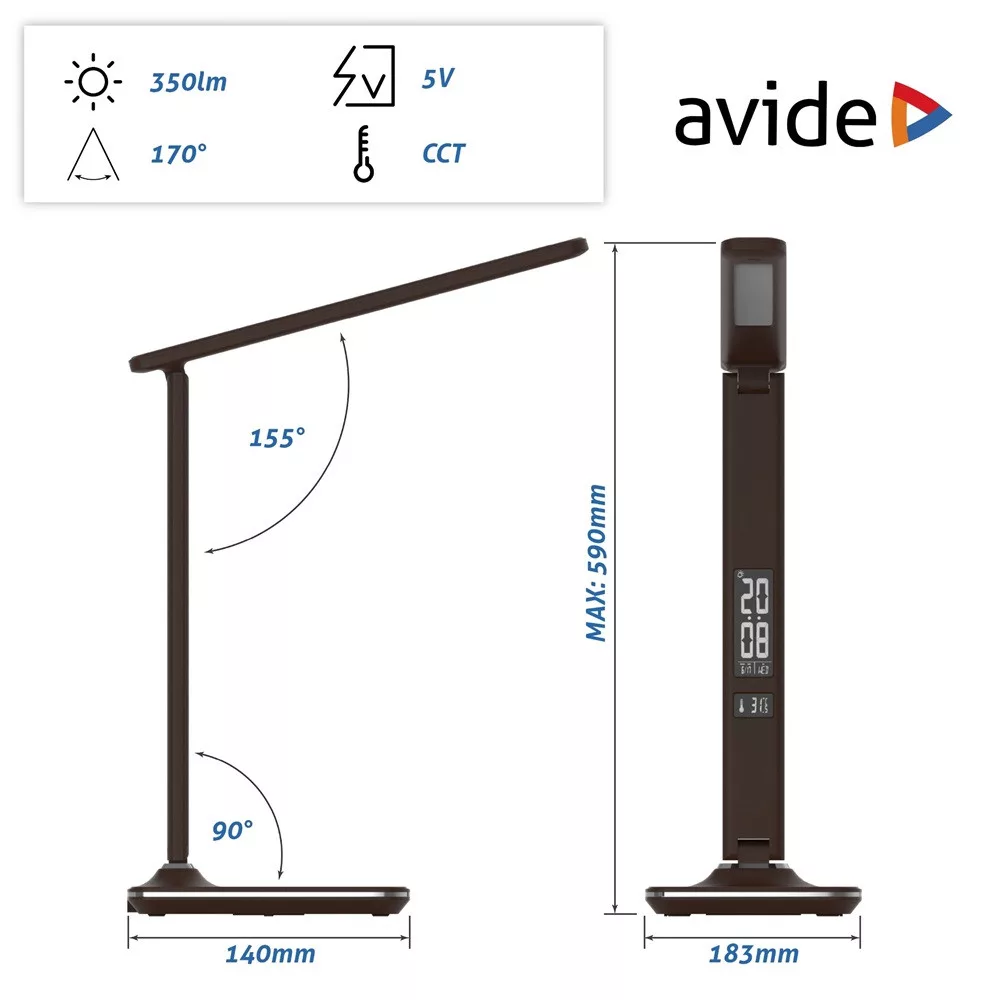 Avide LED Asztali Lámpa Irodai Bőrhatású Naptár Nathan Barna 6W