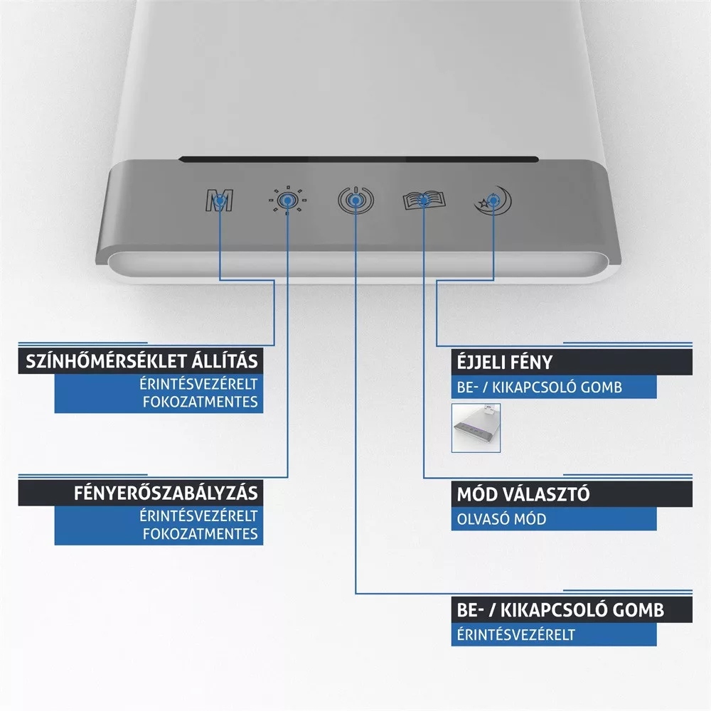 Modern és stílusos asztali lámpa, amely tökéletes kiegészítője lehet bármely otthonnak vagy irodának. A lámpa fehér színű, ami elegáns és letisztult megjelenést kölcsönöz a térnek. Erős 12W LED fényforrással rendelkezik, amely kellemes és meleg fehér fényt biztosít. A LED technológia energiatakarékos és hosszú élettartamú, így nem csak környezetbarát, de hosszú távon is költséghatékony megoldást nyújt. Fényerő állítható, így könnyedén beállíthatod a megfelelő és irányt a személyes igényeid szerint. A lámpa nyakának rugalmas kialakítása lehetővé teszi, hogy a fényt pontosan oda irányítsd, ahol szükséged van rá.