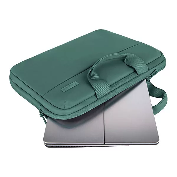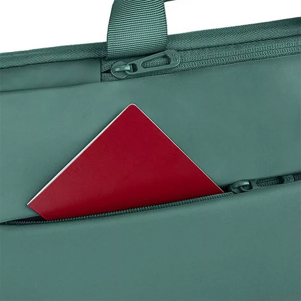 Praktikus, funkcionális és ergonomikus kialakítású notebook táska friss színekben. Párnázott zsebébe varrt neoprén rögzítés megakadályozza a notebook szabad mozgását. Elülső részén található szinte láthatatlan zsebe könnyen hozzáférhető, belső, osztott kialakítással az apróságok elhelyezéséhez. Méretei: 27 × 35 × 6 cm. Anyaga: 100 % polyester. 3 cipzáras zseb. Vízlepergető. Zseb telefonnak, szemüvegnek, kulcsoknak.