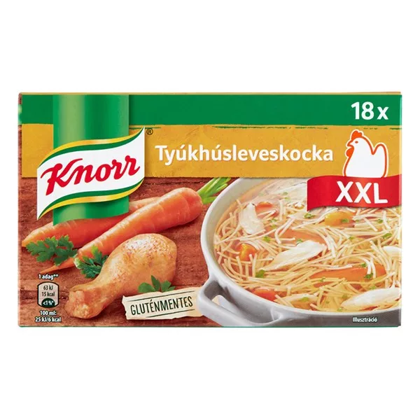 Használati utasításTyúkhúsleves főzésénél igyekezzünk jól megválasztani a zsíros, a csontos és a húsos részek arányát. A farhát kiváló alapanyag levesfőzéshez. A csontokból és a zsírosabb részekből jellemző ízanyagok szabadulnak fel a főzés során, amitől gazdagabb lesz a levesünk. Elkészítési javaslat:Egy kockát tegyen 500 ml forrásban lévő vízbe és oldódásig keverje.
