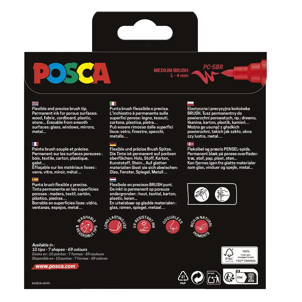 A POSCA egy olyan kreatív eszköz, amely minden felületen használható, az eredmény pedig a felülettől függően átmeneti vagy maradandó. Használható fán, kartonon, textilen, köveken, bőrön, műanyagon, fémen és üvegen.