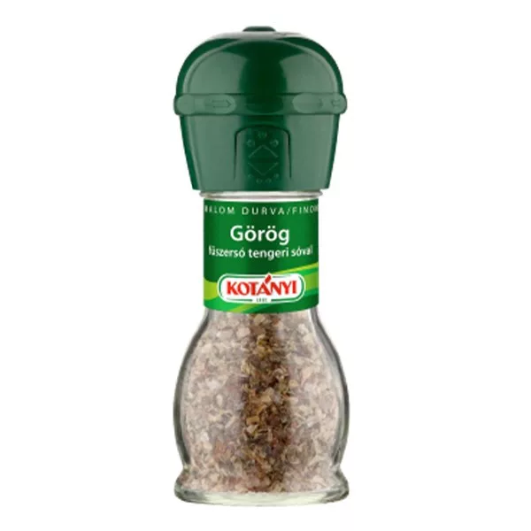 Kotányi Malom Görög fűszersó tengeri sóval.Súly: 40 gÖsszetevők:Jódozott tengeri só (tengeri só, kálium-jodát); Kakukkfű; Papradicsomgranulát; Fokhagyma; Bazsalikom; Borsikafű; Vöröshagyma; Oregánó; Zöldmenta.allergének:A termék gluténtartalmú gabonaféléket, tojást, tejet (laktóz), zellert, mustárt és szezámmagot felhasználó gyártóüzemben készült.