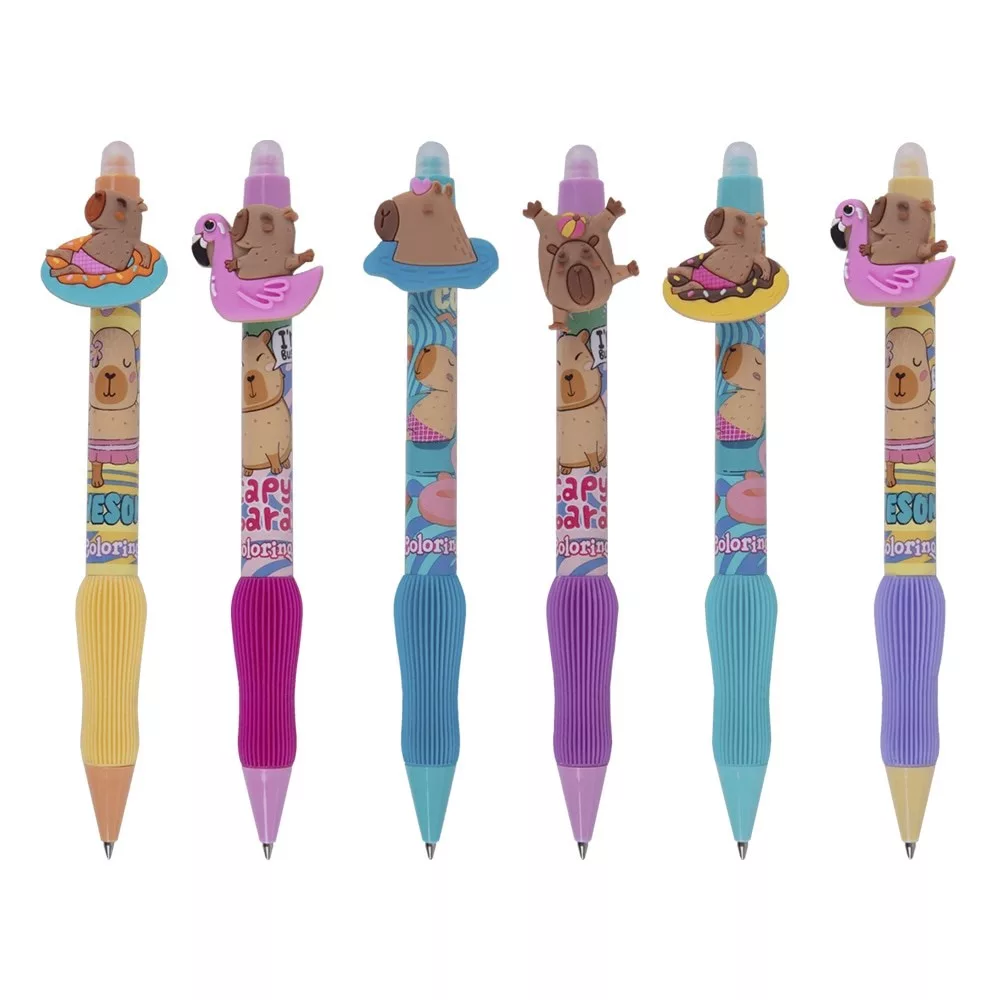 Praktikus radírozható, golyóstollak gyerekeknek 3D-s Capybara figurával. A minőségi tinta könnyen törölhető és szükség esetén felülírható.