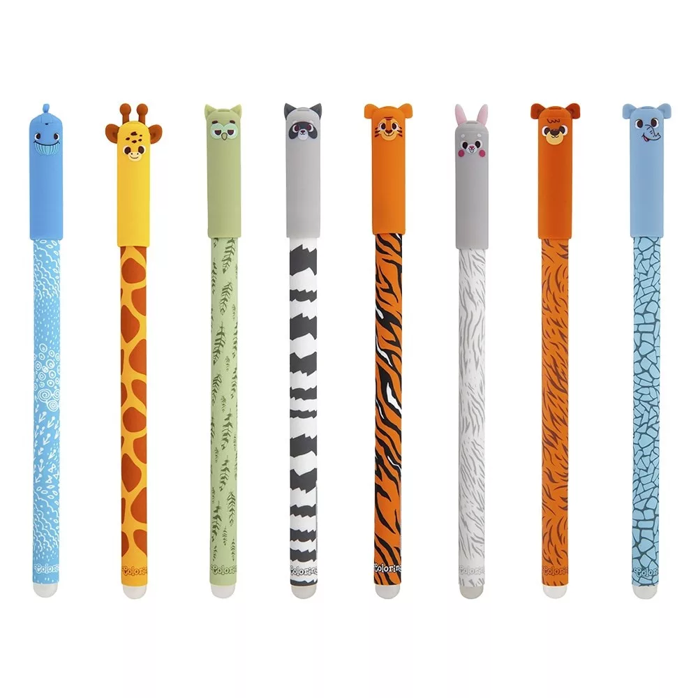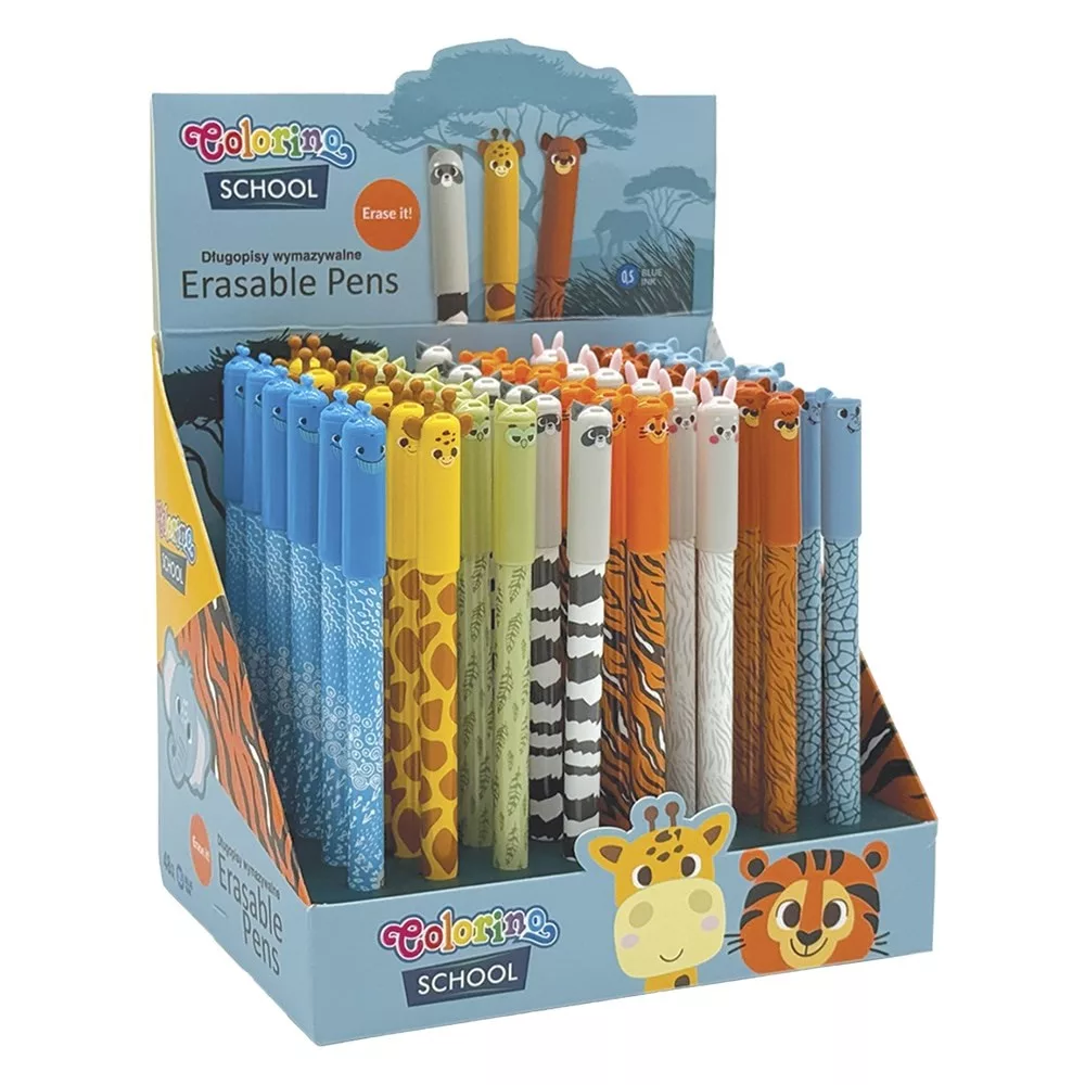 Praktikus radírozható, kupakos golyóstollak gyerekeknek, különféle színű állatos mintával. A minőségi tinta könnyen törölhető és szükség esetén felülírható.