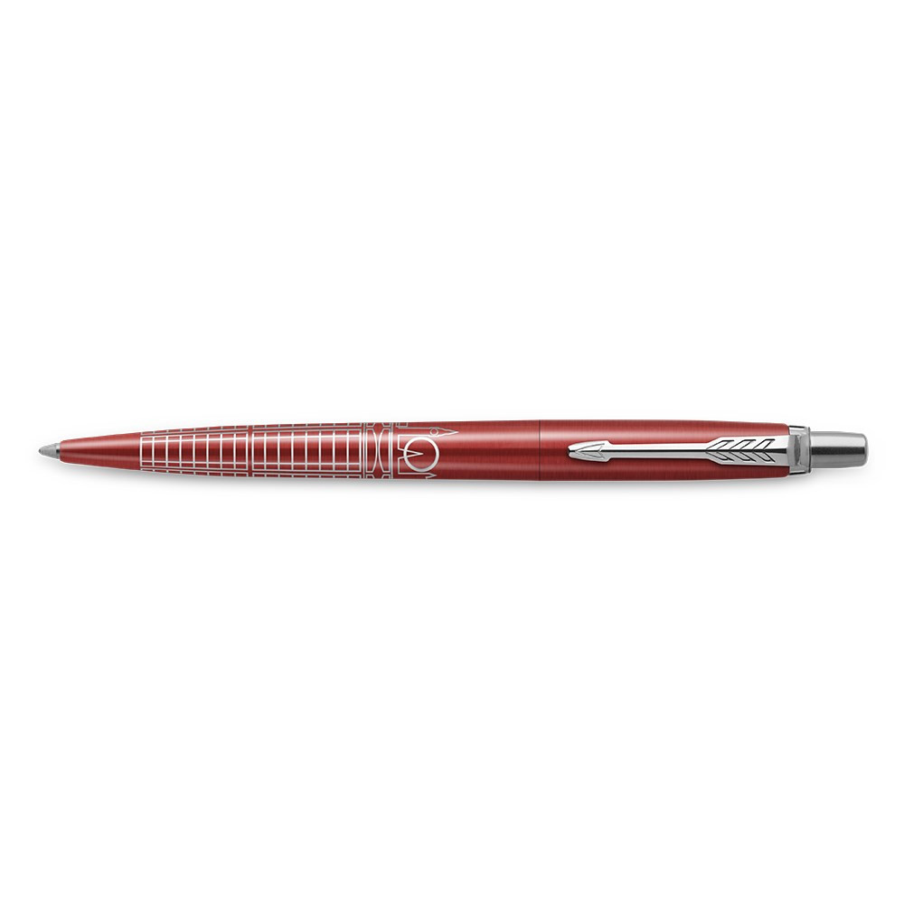 A Parker mesteri kivitelezésének lenyűgöző példájaként az egyedi dizájn precízen lézergravírozva jelenik meg a toll testén. A vörös lakkozott felület, a sima írásélmény és a Jotterre jellemző, jól ismert „kattanás” teszi teljessé a tollat.