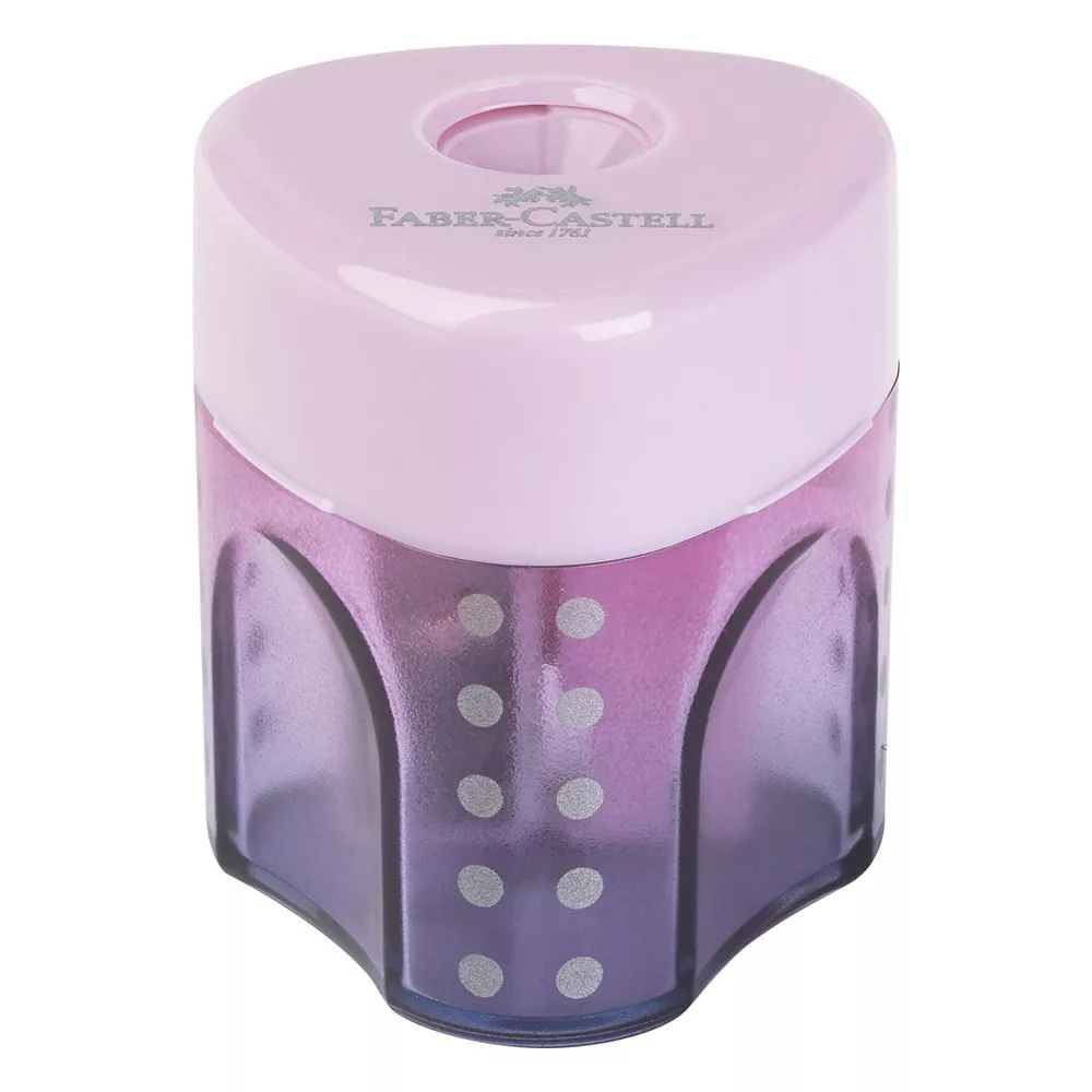 Hegyező mini tartályos GRIP Flow Edition átlátszó vegyes színátmenetes színekben; Praktikus, minőségi hegyező a könnyű és tiszta hegyezésért; Minden normál grafit- és színes ceruzatípushoz egyaránt alkalmas; Tartályos a tiszta használat és tárolás érdekében; Színek: rózsaszín-égkék, türkiz-kék, lila-piros