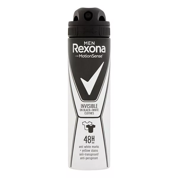 Termék információkTermék jellemzők:- Izzadásgátló védelem- 48 órás védelem- Férfias illat- Foltok elleni védelem- Motionsense™ technológia- Egész napos frissességMárka bemutatás:A modern világ életstílusa magával hozta azt, hogy sokkal kevesebbet mozgunk, mint korábban. Elkényelmesedtünk a mindennapjainkban, anélkül, hogy mindezt észrevettük volna. A Rexonánál hiszünk abban, hogy itt az ideje, hogy mindez megváltozzon. Hiszünk Benned és abban, hogy nálad is megtalálható az az erő, hogy aktívan tegyél egészséged érdekében! Hiszen minél többet mozogsz, annál inkább érzed, hogy élsz. És ahogy te egyre többet mozogsz, a Rexona izzadásgátlók - a Motionsense™ technológiának köszönhetően - annál hatékonyabbak lesznek.Termék bemutatás:Az Invisible Black + White izzadásgátló segít, hogy ruháidon a fekete mindig fekete, a fehér pedig fehér maradjon. Gazdag, fás illat.Edukáció:Izzadásgátló védelem gazdag, fás illattal és Motionsense™ technológiával aeroszol formátumban.Hogyan használd?Ha a legjobb eredményt szeretnéd elérni, akkor használd az aeroszolt zuhanyzás után, amikor a bőröd száraz és hűvös. Jól rázd fel a flakont, tartsd el a hónaljadtól 15 centiméterre és gyorsan fújd be mindkét hónaljad.
