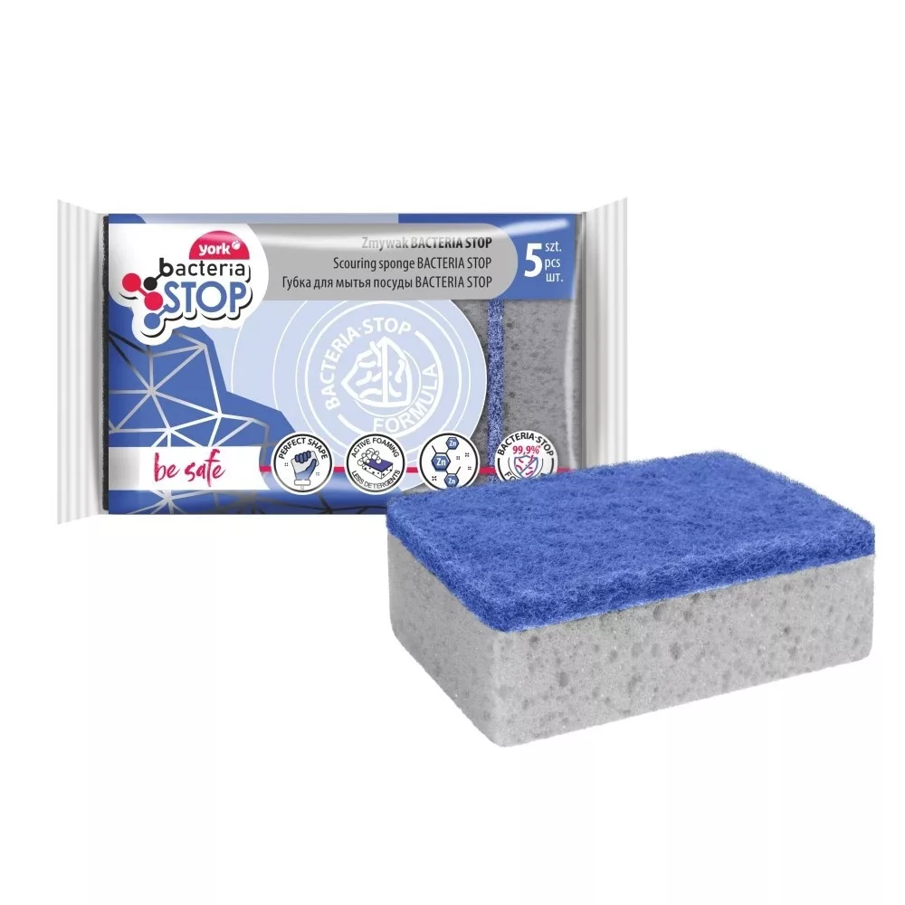 York Antibakteriális szivacs: kétrétegű (puha hab és rost), tartós. Mosogatáshoz, általános tisztításhoz – különösen olyan felületekhez, ahol fontos a higiénia és a baktériumok csökkentése. 99,99% -ig blokkolja a káros baktériumok szaporodását, és nem bocsát ki kellemetlen szagokat