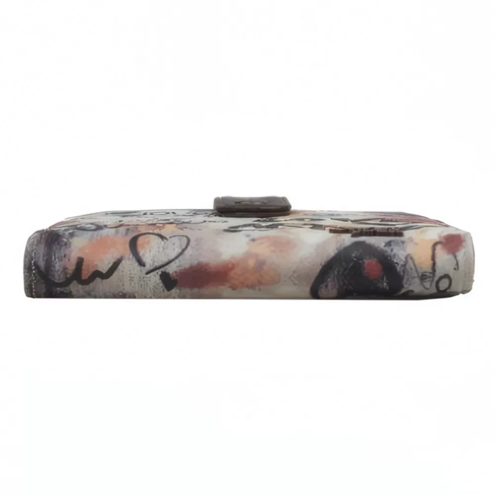 Az Art Gallery kollekció pénztárcája kicsi, de kihagyhatatlan. A játékos feliratos és festői részletekkel díszített minta egy mini vászonként működik, amely minden használatkor elvarázsol.
