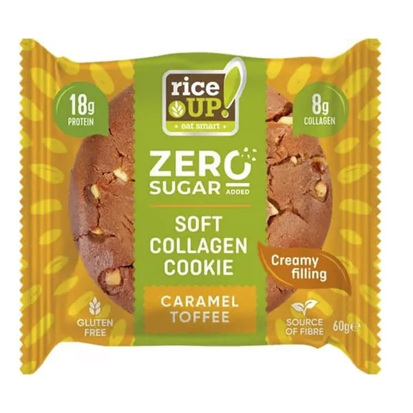 Karamell ízű töltelék 18% (tejfehérje, hidrolizált kollagén peptidek (marha), magas olajsav tartalmú napraforgóolaj, növényi glicerin, cikória gyökérrost, természetes aroma) Hidrolizált kollagén peptidek 14% (marha). Gluténmentes zabpehely. Növényi glicerin. Magas olajsav tartalmú napraforgóolaj. Tojások. Csokidarab [kakaómassza, sovány tejpor, cikória gyökérrost, nem hidrogénezett növényi zsír, emulgeálószer: napraforgó lecitin, természetes vanília aroma. Oldódó rost (psyllium héj, polidextróz). Kakaópor. Térfogatnövelőszer: sütőpor. Természetes aromák.