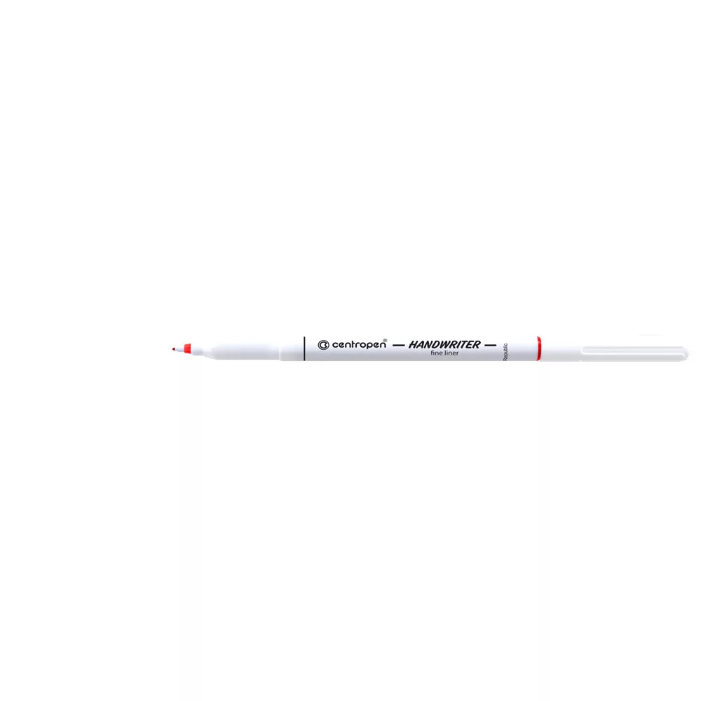 Vízbázisú kupakos tűfilc, fehér test szín, írásszín: piros, vonalvastagság: 0,5mm. Katalóguskód: 67579