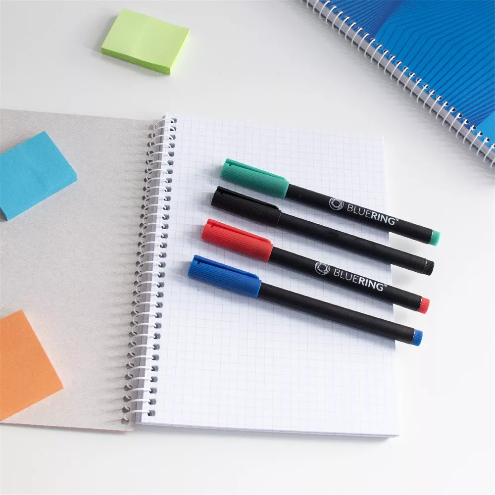 A készlet 0,5 mm vastagságú írást biztosít, ami ideális különféle anyagok jelöléséhez is mivel tartós alkoholos tintát tartalmaz.