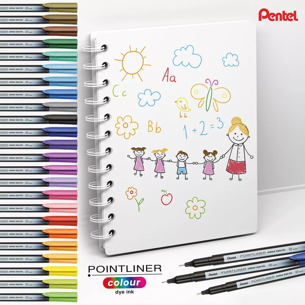 A Pentel színes tűfilc egy vékony hegyű, műanyag írócsúccsal és vízbázisú (dye) tintával ellátott tűfilc, amely a Pentelre jellemző kiemelkedő minőséget képviseli. Kifejezetten ajánlott finom íráshoz, javításhoz, rajzoláshoz és vázlatkészítéshez, hiszen a 0,4 mm-es hegy pontos és precíz vonalvezetést tesz lehetővé. Az élénk, gazdag színeknek köszönhetően a munka nemcsak pontos, hanem látványos is lehet. A tűfilc 24 különböző színben érhető el, így minden feladathoz vagy kreatív projekthez megtalálható a megfelelő árnyalat. Használat után a tinta kiszáradásának elkerülése érdekében mindig gondosan zárd vissza a kupakot. A Pentel tűfilc megbízható társ a mindennapokban, legyen szó tanulásról, munkáról vagy szabadidős alkotásról. Az alábbi szett 6 darab színes tűfilcet tartalmaz: 2 fekete(S40-A) , 1 piros(S40-B), 1 zöld(S40-D), 1 kék(S40-C) és 1 lila(S40-V) színűt.
