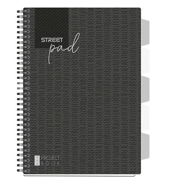 Spirálfüzet kockás STREET Pad A/4 100 lapos regiszteres fekete