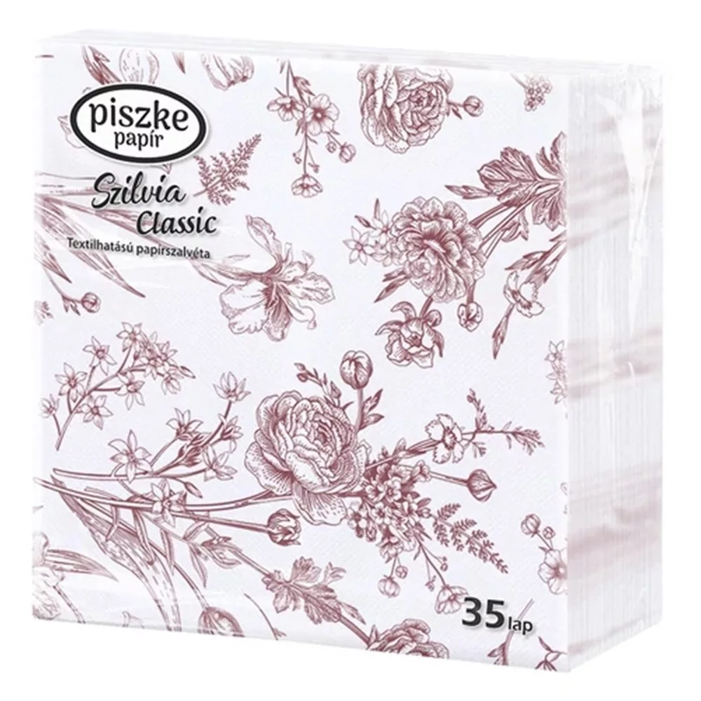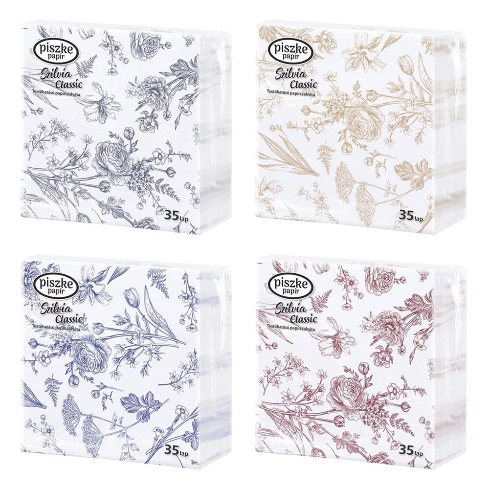 Szalvéta PISZKE Szilvia Classic 2 rétegű 33x33 cm 1/4 hajtogatott 35 lapos vegyes mintás