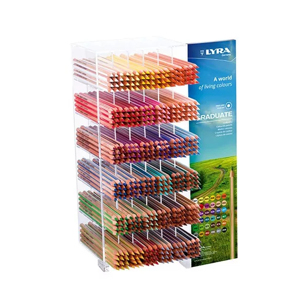 Plexi display Graduate ceruzákhoz.432 db ceruza helyezhető el rajta.Tartalma: 36 szín, 12 db/szín.Pultra helyezhető.A displayt feltöltve szállítjuk!