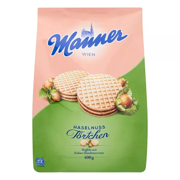 Manner-töltött ostya.Kakaós-mogyorókrémmel.400gr./csomag.Összetevők:Cukor, Növényi zsírok (kókusz, pálma), Búzaliszt, Sovány kakaópor (7% a krémben), Mogyoró (5% a krémben), Édes tejsavópor, Savókészítmény, Emulgeálószer (szójalecitin), Térfogatnövelő szer (nátrium-hidrogén-karbonát), Étkezési só, Aroma.Allergének:Glutént tartalmazó gabonafélék (búza,rozs,árpa,zab,tönkbúza,kamut) és belőlük készült termékek.Szójabab és belőle készült termékek.Allergének (tartalmazhat):Diófélék (mandula,mogyoró,dió,kesudió,brazil dió,pisztácia,makadám,queenslandi dió) belőle készült termékek.Tej és abból készült termékek beleértve a laktózt.Referencia beviteli érték egy átlagos felnőtt számára (8400kJ/2000kcal).