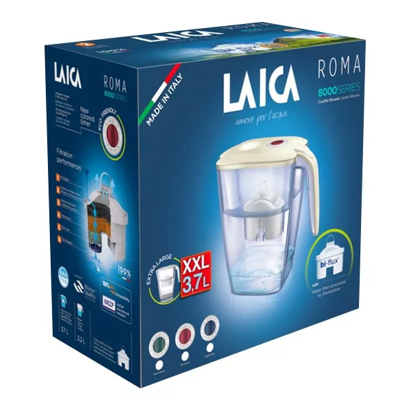 Teljes kapacitás:3,7 literSzűrt víz kapacitás: 2,2 literSzűrő csere emlékeztető: mechanikus kerek tárcsaBiztonsági fedél: mely megőrzi a szűrt víz tisztaságát és minőségét.Feltöltés csapvízzel: fedél levétele nélkül (a csapvíz nyomására nyíló feltöltő nyílás)Tisztítás: Mosogatógépben tisztítható kancsó, kivéve a tetőOlaszországban tervezve és gyártva.Kompatibilis az összes LAICA bi-flux szűrőbetéttel.